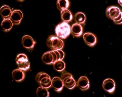 Sötétlátóteres technikával készített élő vércsepp-analízisről fényképek