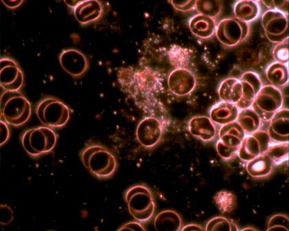 Sötétlátóteres technikával készített élő vércsepp-analízisről fényképek